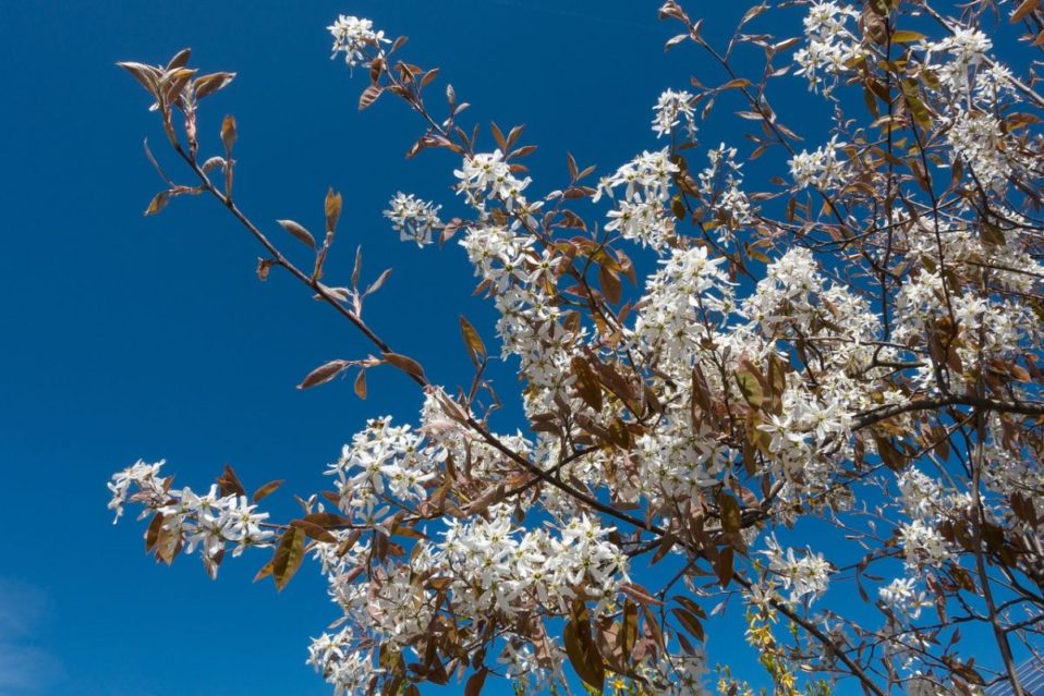 Ich möchte Ihnen heute einen sehr schönen Frühlingsblüher vorstellen – die Kupfer-Felsenbirne. Bereits im März/April beeindruckt dieser Großstrauch mit einem Blütenmeer aus weißen, sternförmigen Trauben.